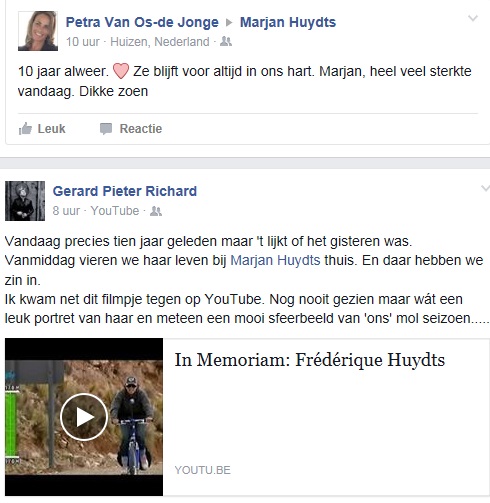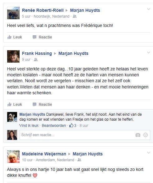 Vandaag is het alweer 10 jaar geleden dat Frédérique is overleden. Wij wensen haar familie, vrienden en bekenden veel sterkte toe op deze moeilijke dag!